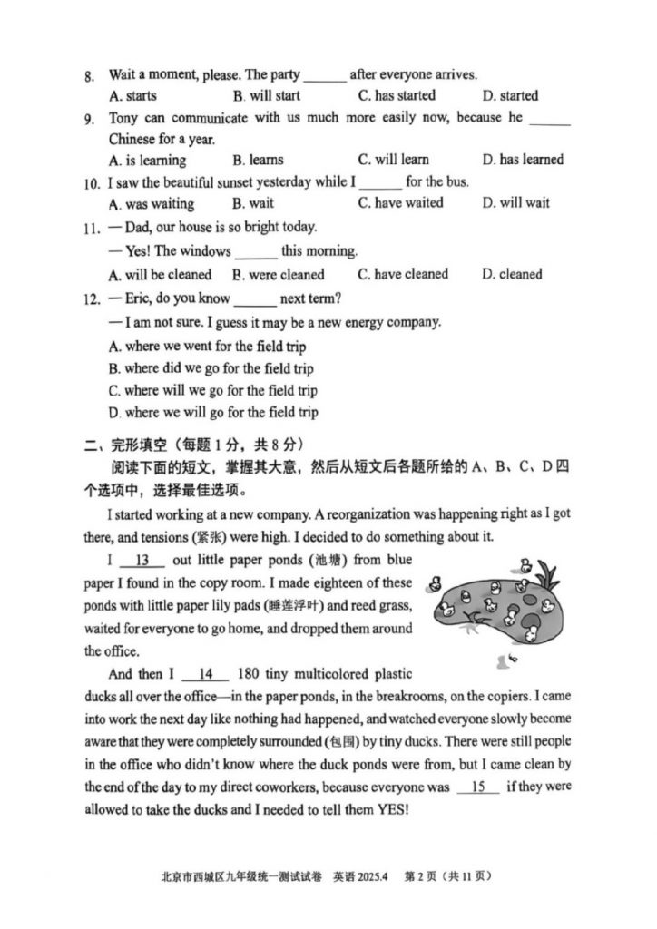 2025北京各区初三一模已陆续开始,admw360教研组整理了2025北京西城区初三一模英语试题及答案,分享给大家。快来下载复习吧。