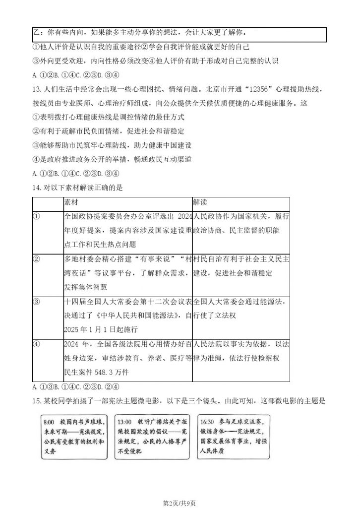 首页 初三试题 北京朝阳区2025初三一模道德与法治试题及答案