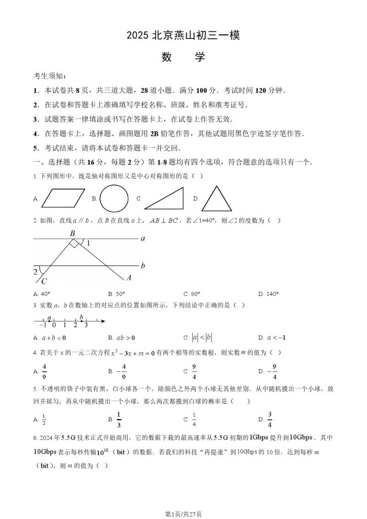 2025北京各区初三一模已陆续开始,admw360教研组整理了2025北京燕山区初三一模数学试题及答案,分享给大家。快来下载复习吧。