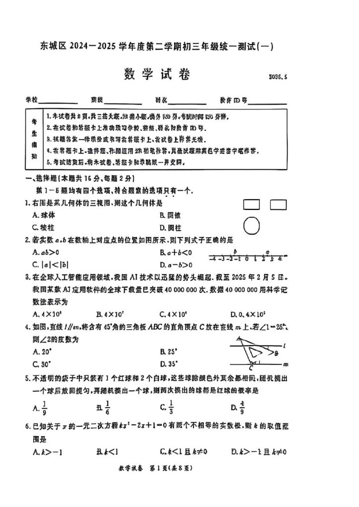 2025北京各区初三一模已陆续开始,admw360教研组整理了2025北京东城初三一模数学试题及答案,分享给大家。快来下载复习吧。