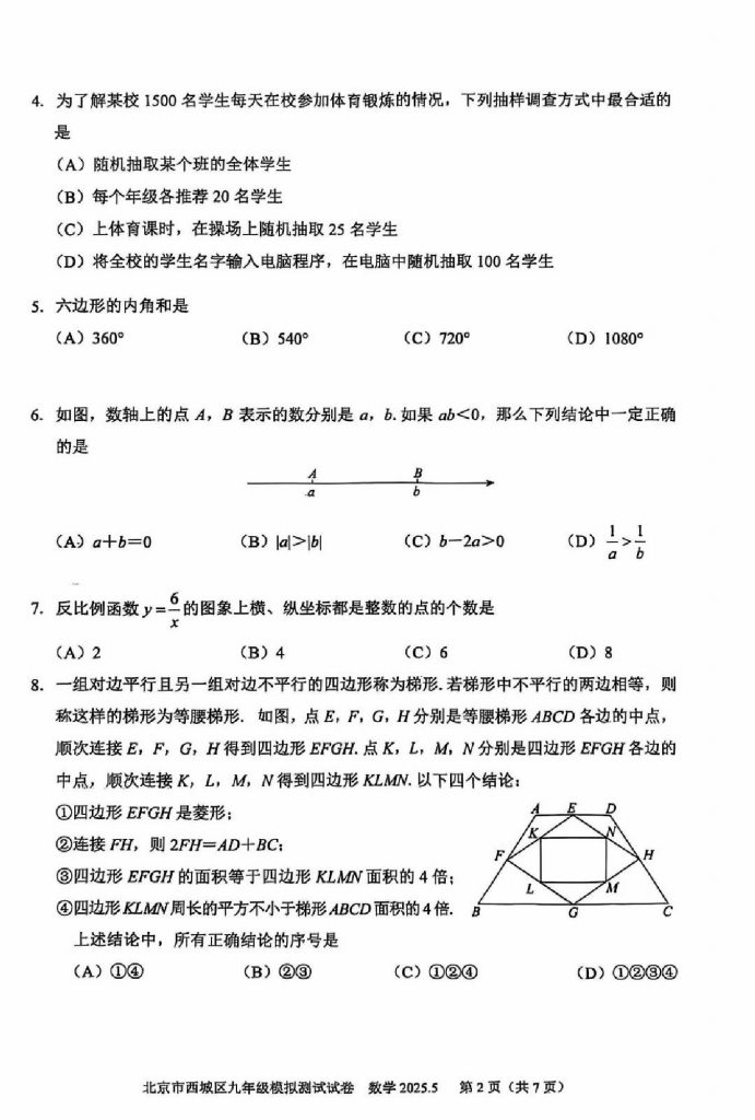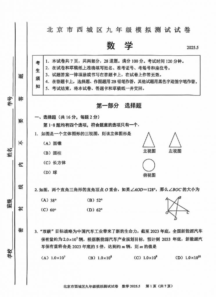 2025北京各区初三二模已陆续开始,admw360教研组整理了2025北京西城区初三二模数学试题及答案,分享给大家。
