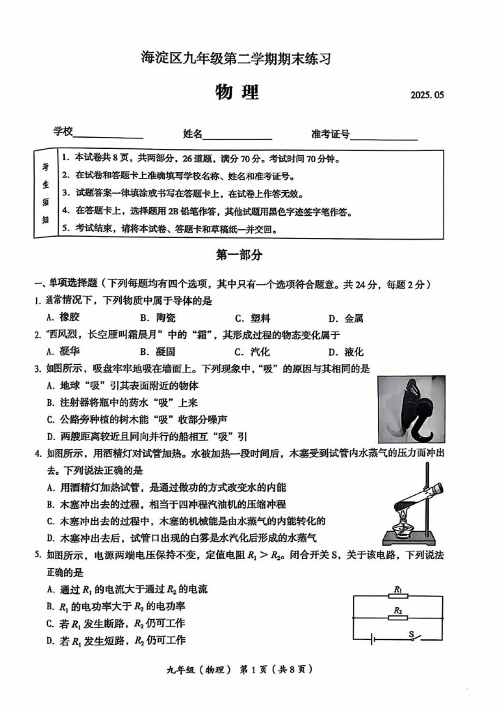 2025北京各区初三二模已陆续开始,admw360教研组整理了2025北京海淀区初三二模物理试题及答案,分享给大家。
