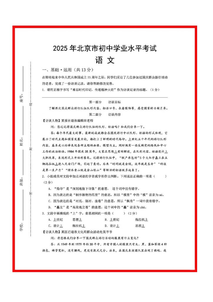 2025年北京中考还有十三天,中考开考前,我们整理了相关2025北京中考押题卷试题供大家下载参考,预祝各位考生考出理想的成绩!