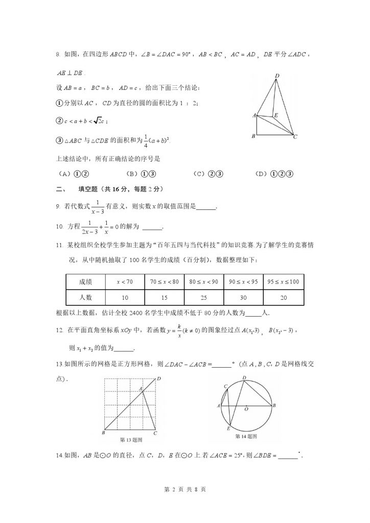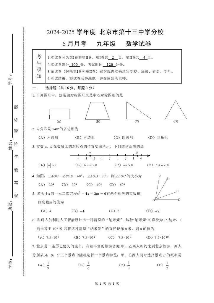 2025北京中考即将来临,admw360教研组整理了北京十三中分校2025年初三三模数学试题,分享给大家: