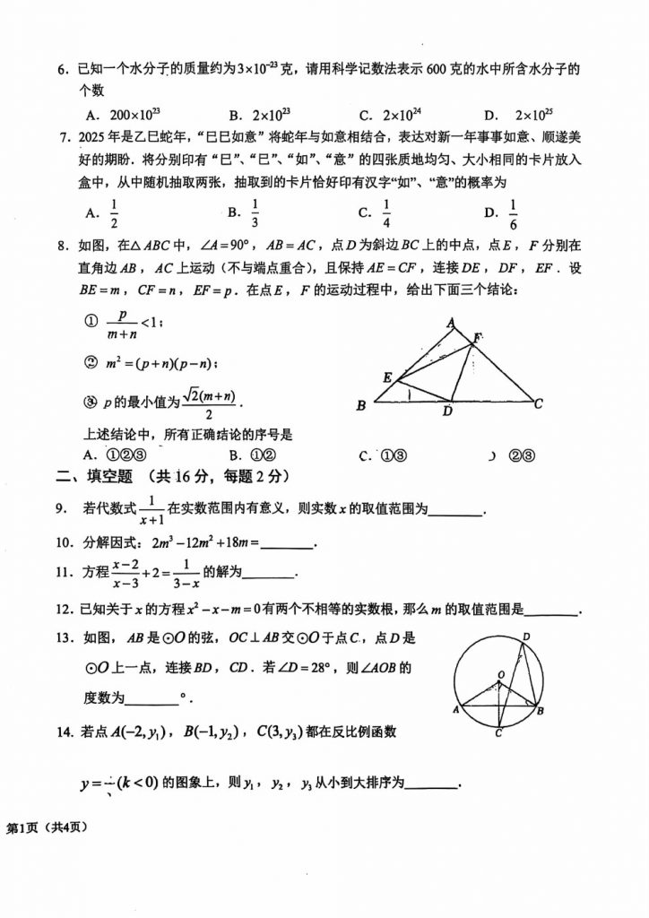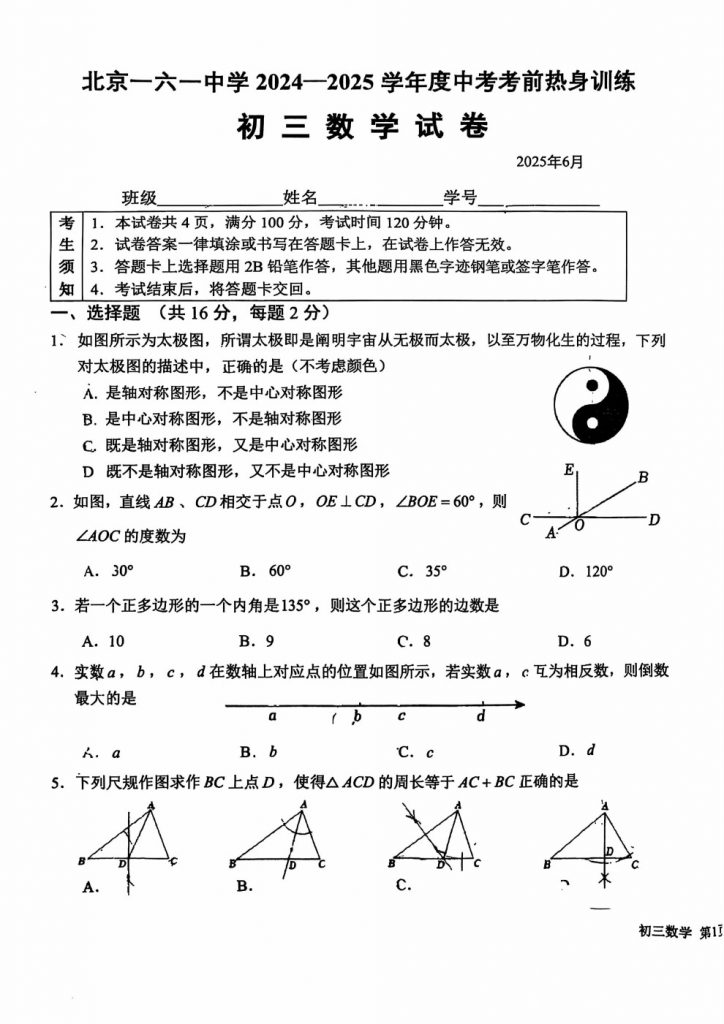 2025北京中考即将来临,admw360教研组整理了2025北京一六一中初三三模数学试题,分享给大家: