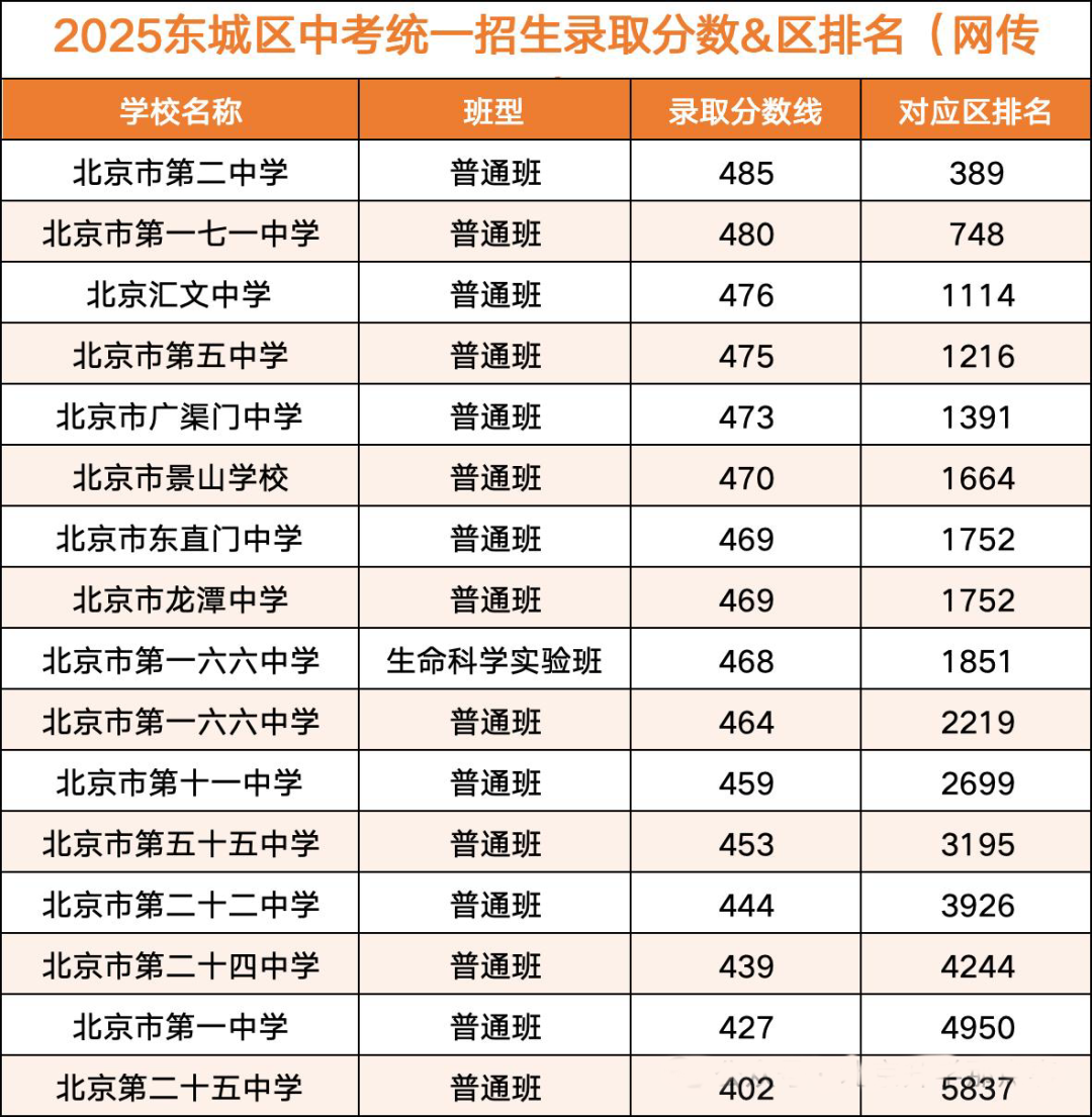 2025年中考录取分数线,因为各区都没有官宣中考录取分数线(因为官方不让发,现在都是往传版)admw360教研组目前收集整理的2025东城中招录取分数线&区排名(网传版),分享给大家了解参考,其中部分没有更新的学校分数线家长可以分享到评论区