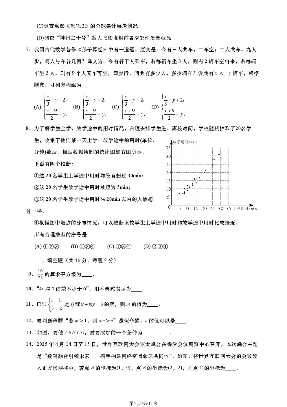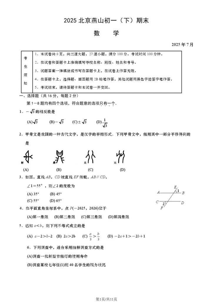 2025年北京各区初一(下)期末考已陆续开始进行,admw360教研组整理了2025北京燕山初一(下)期末数学试题及答案,分享给大家。