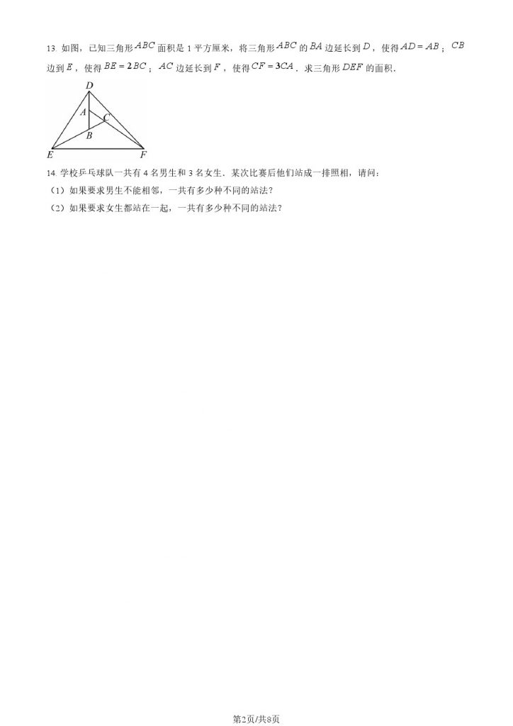 admw360教研组整理了海淀外国语实验学校2024初一分班考数学试题及答案,分享给大家,同学们做题练习后可结合参考答案进行估分。