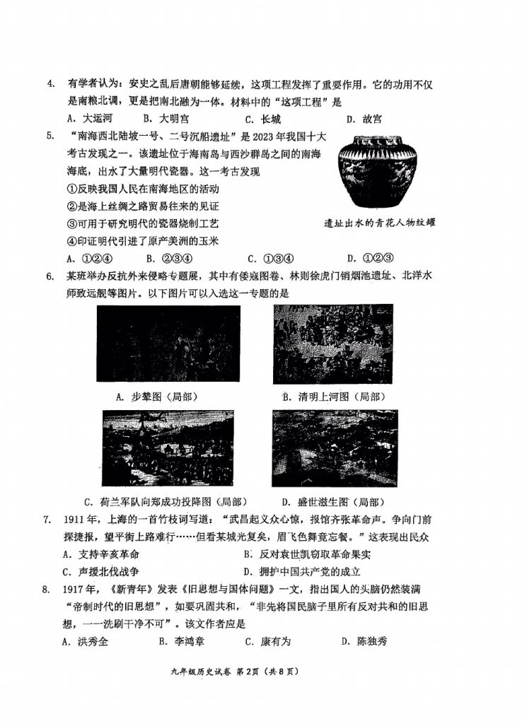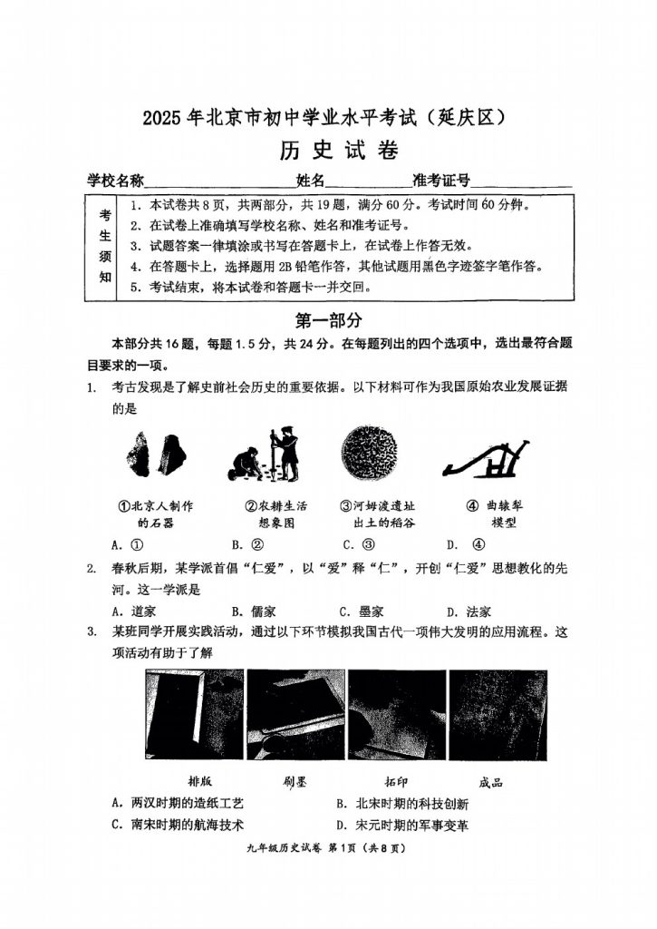 admw360教研组整理了2025北京延庆区初中学业水平考试历史试题及答案。供大家参考,欢迎转发分享!