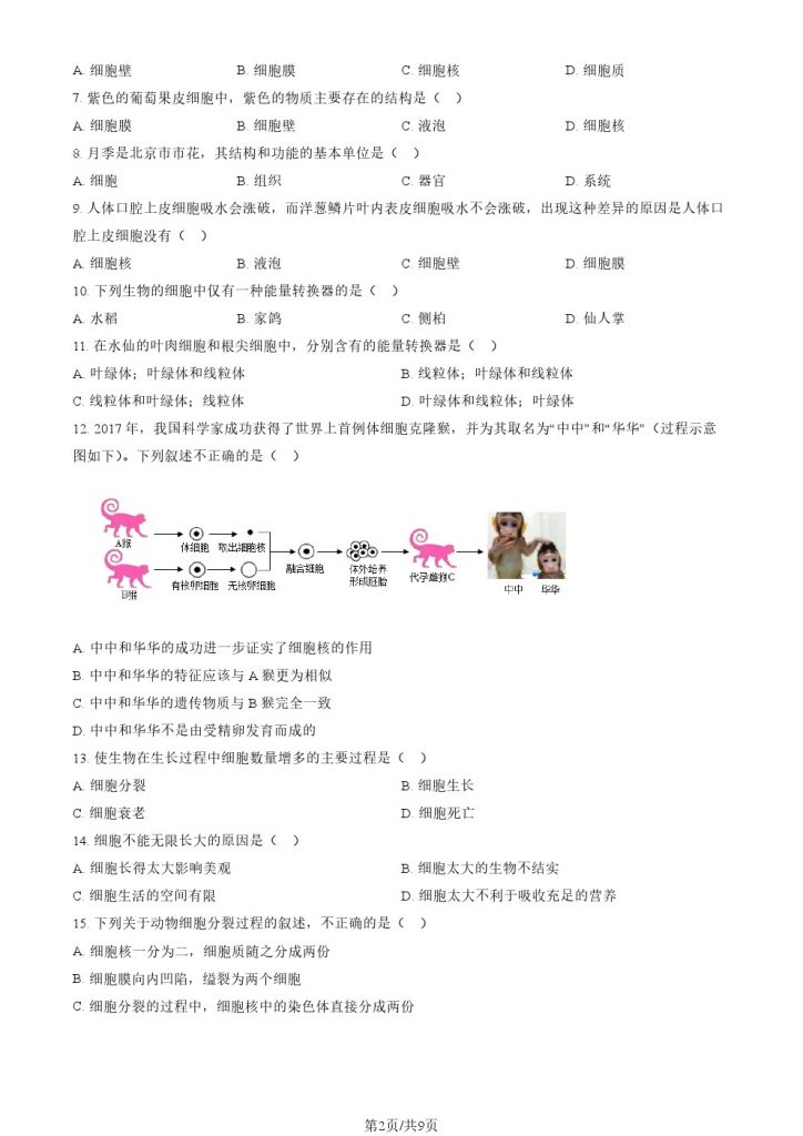 为方便大家对答案、下载练习等小编整理了2024北京西城外国语学校初一(上)期中生物试题及答案,需要的小伙伴赶紧下载练习起来吧: