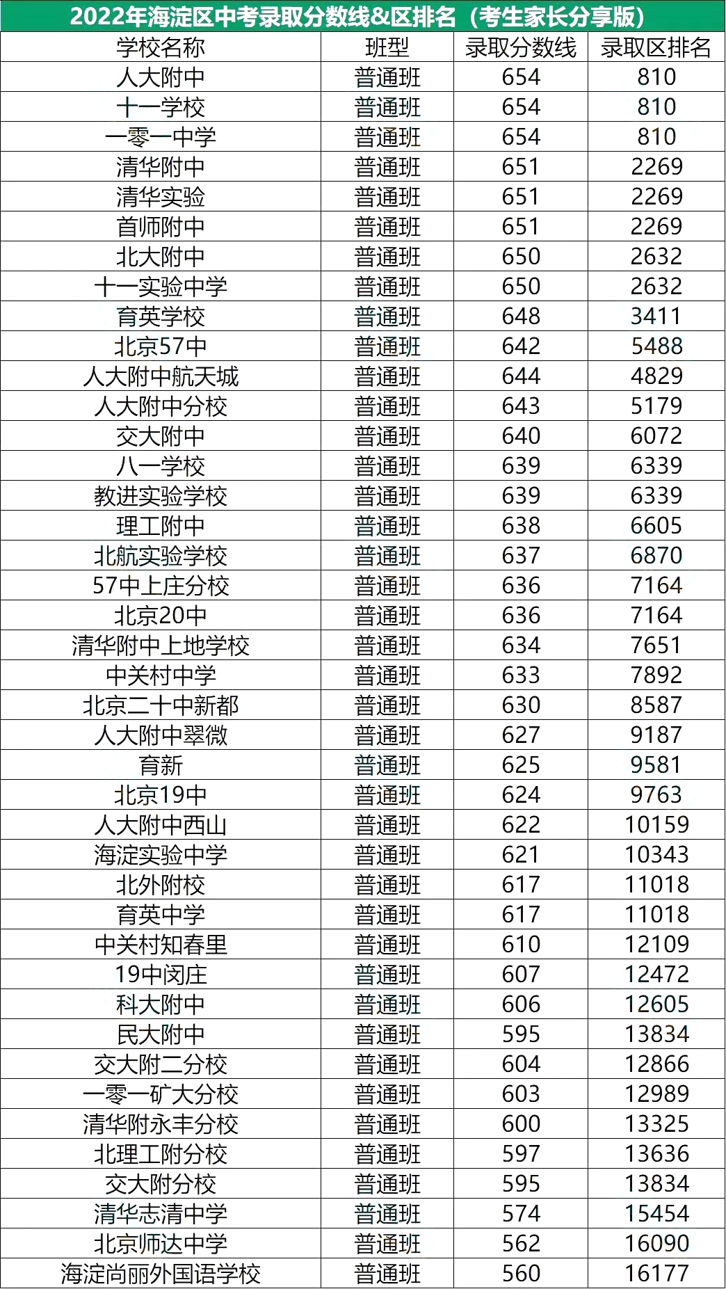 北京2022中考成绩分数段及海淀区近3年录取分数线和排名!!!
