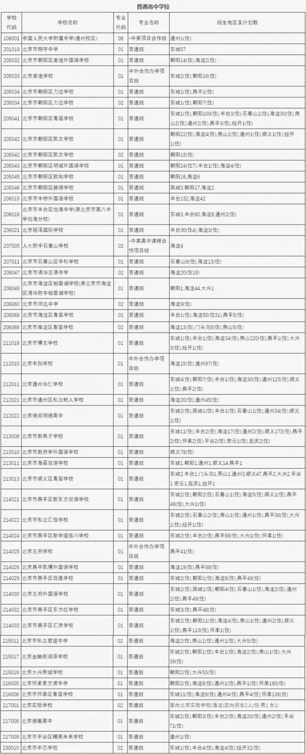 2023北京中考各校招生计划汇总