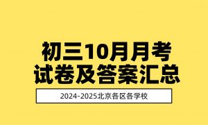 北京2024.10各个学校月考正在陆续进行中,为方便大家对答案、下载练习等小编给大家搜集了2024人大附中、清华附等多校初三10月月考真题及答案,需要的小伙伴赶紧下载练习起来吧: ...