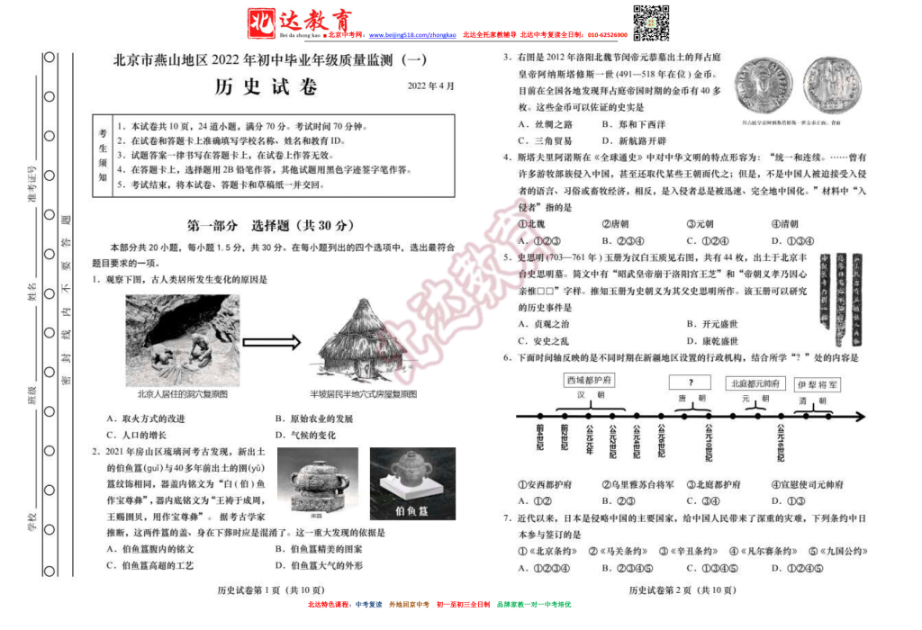 北京燕山2022初三一模历史试卷(高清版) //www.admw360.com/zhongkao/69623.html Mon, 30 May 2022 10:46:47 +0000 //www.admw360.com/zhongkao/?p=69623 北京燕山2022初三一模历史试卷(高清版)。admw360中考复读学校教研组收集整理,分享给大家。