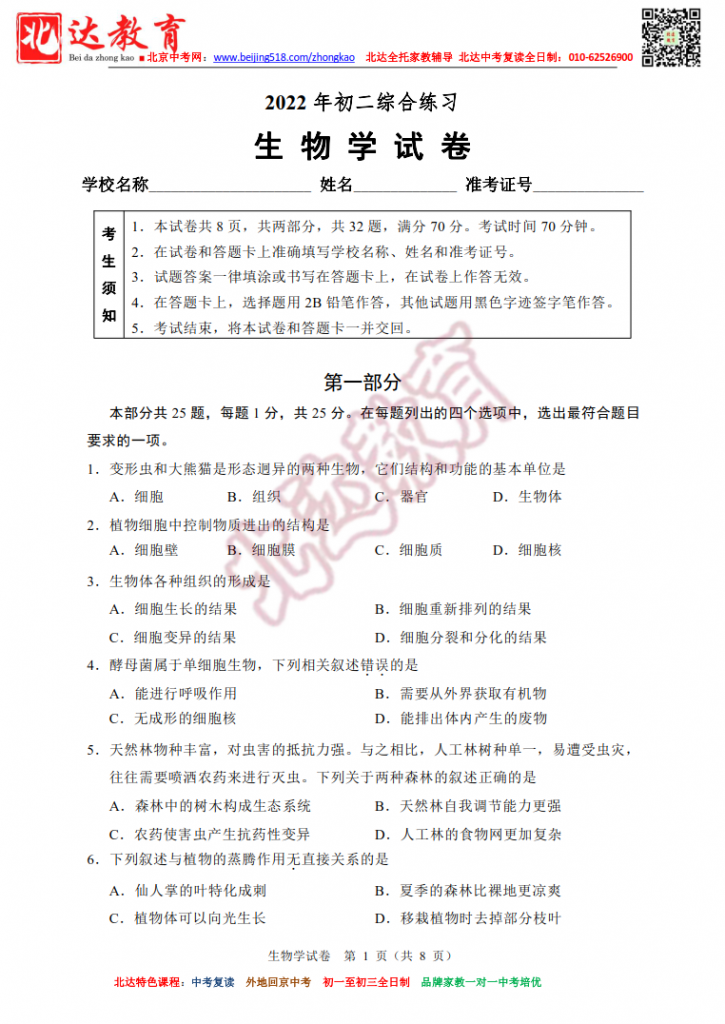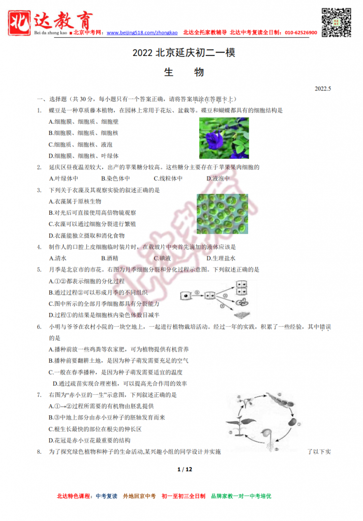 北京大兴2022初中一模生物试题及答案(高清版) //www.admw360.com/zhongkao/70791.html Thu, 16 Jun 2022 11:00:50 +0000 //www.admw360.com/zhongkao/?p=70791 北京大兴2022初中一模生物试题及答案(高清版)。admw360中考复读学校教研组收集整理,分享给大家。