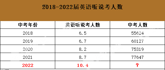 上述表格为近几年参加英语听说考首考的人数,通过上述表格数据,我们可以看出:中考人数相比英语听说考首考人数会降低。