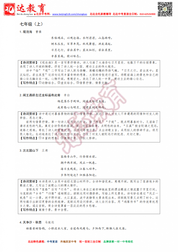 初中三年语文全部古诗赏析+写作特点分册汇总