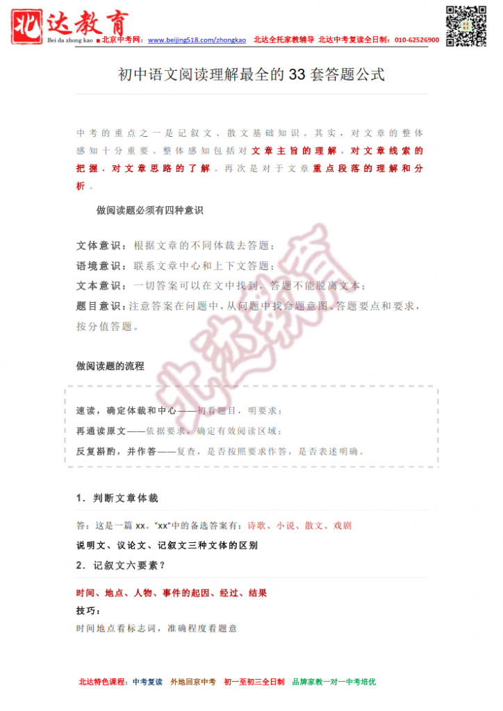 2022中考语文阅读理解33套答题公式(高清版)