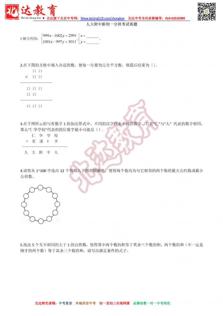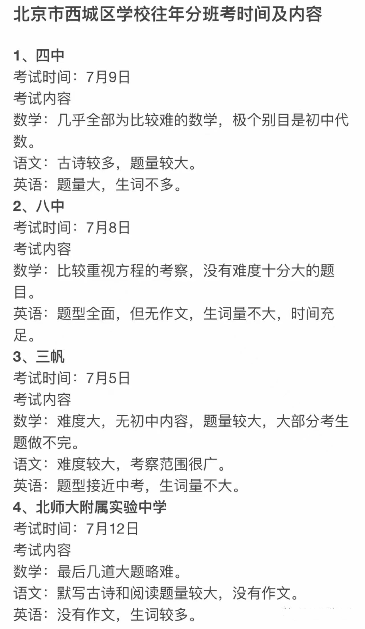 ★目 标:人大附中、北大附中、清华附中、四中等重点高中。
