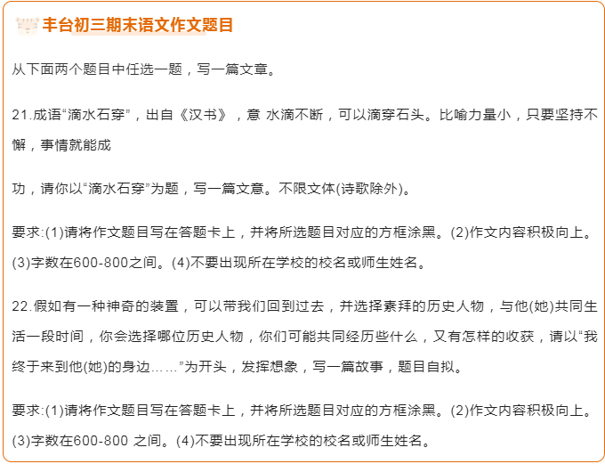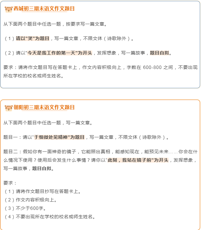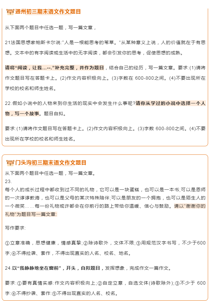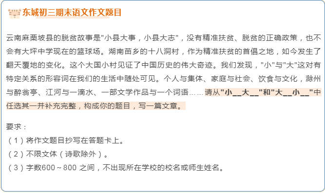 这种形式的作文近年来备受青睐,既设置了具体的情境,又让考生有充分的想象力空间,可以考查考生的思维发散能力。不排除中考会出这种类型的作文题目,平时不擅长这类写作方式的考生在中考前要针对自己的实际情况加强练习。