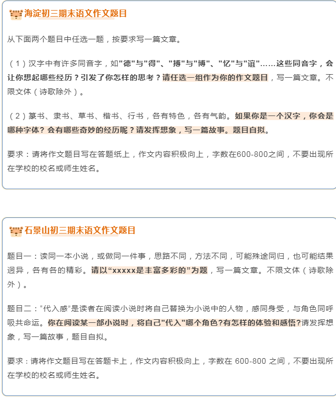 类似将科幻小说为基准的想象类作文或者以多少年后的自己,穿越时空的自己作为一种命题。这在以前很少见,由此可见,这将是一个很重要的中考语文作文命题趋势。考生和家长应该重视。