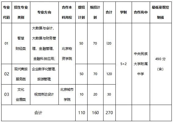 2.贯通培养各项目最低录取分数线统一设置为490分,通过提前招生或统一招生方式录取。