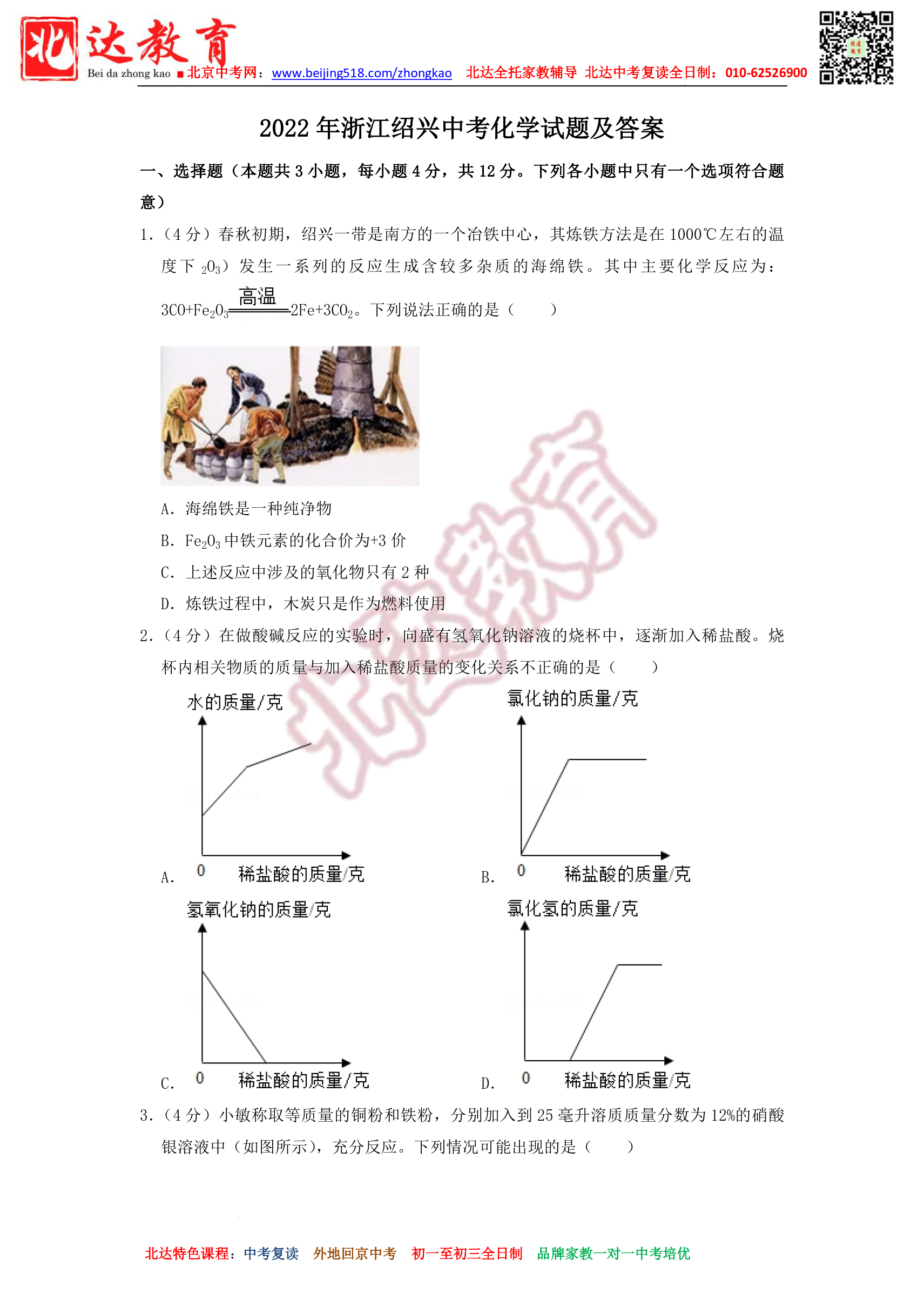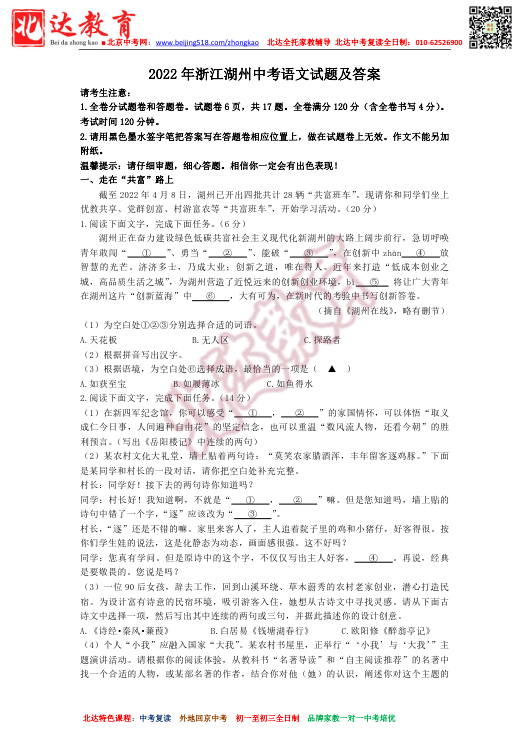 2022年浙江省丽水市中考历史&道德与法治试题及答案