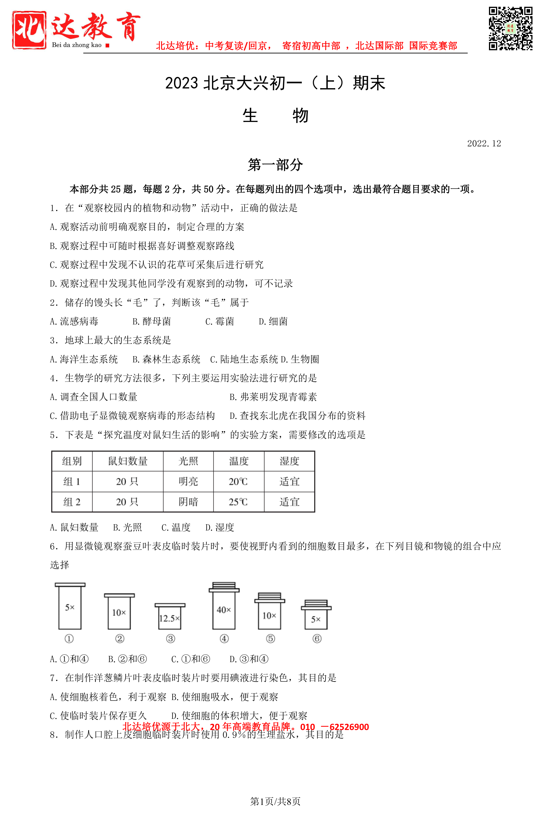 相关阅读:2022-2023学年北京各区初一(上)期末试卷&答案汇总