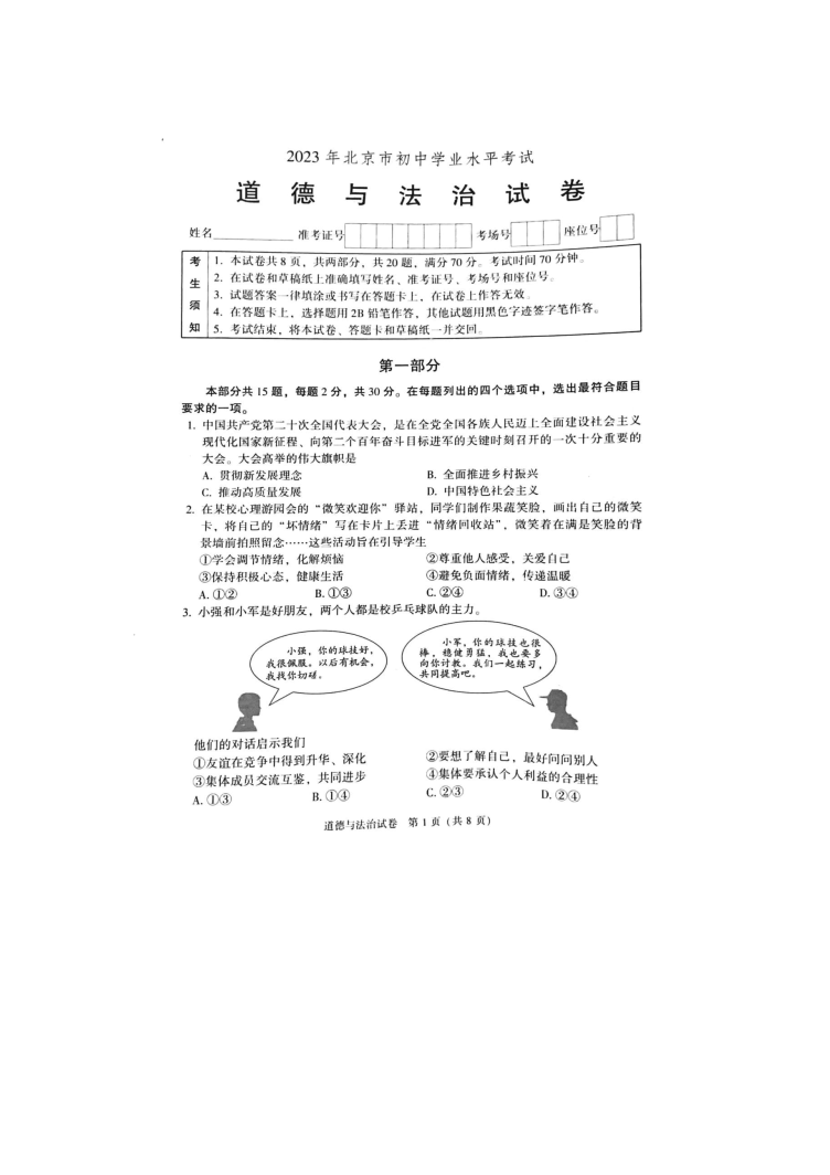 相关阅读:2023年北京中考真题及试卷评析汇总