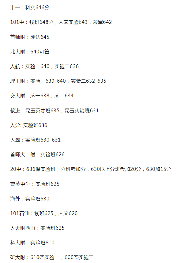 2023北京中考各校实验班(班型/人数/录取线)汇总