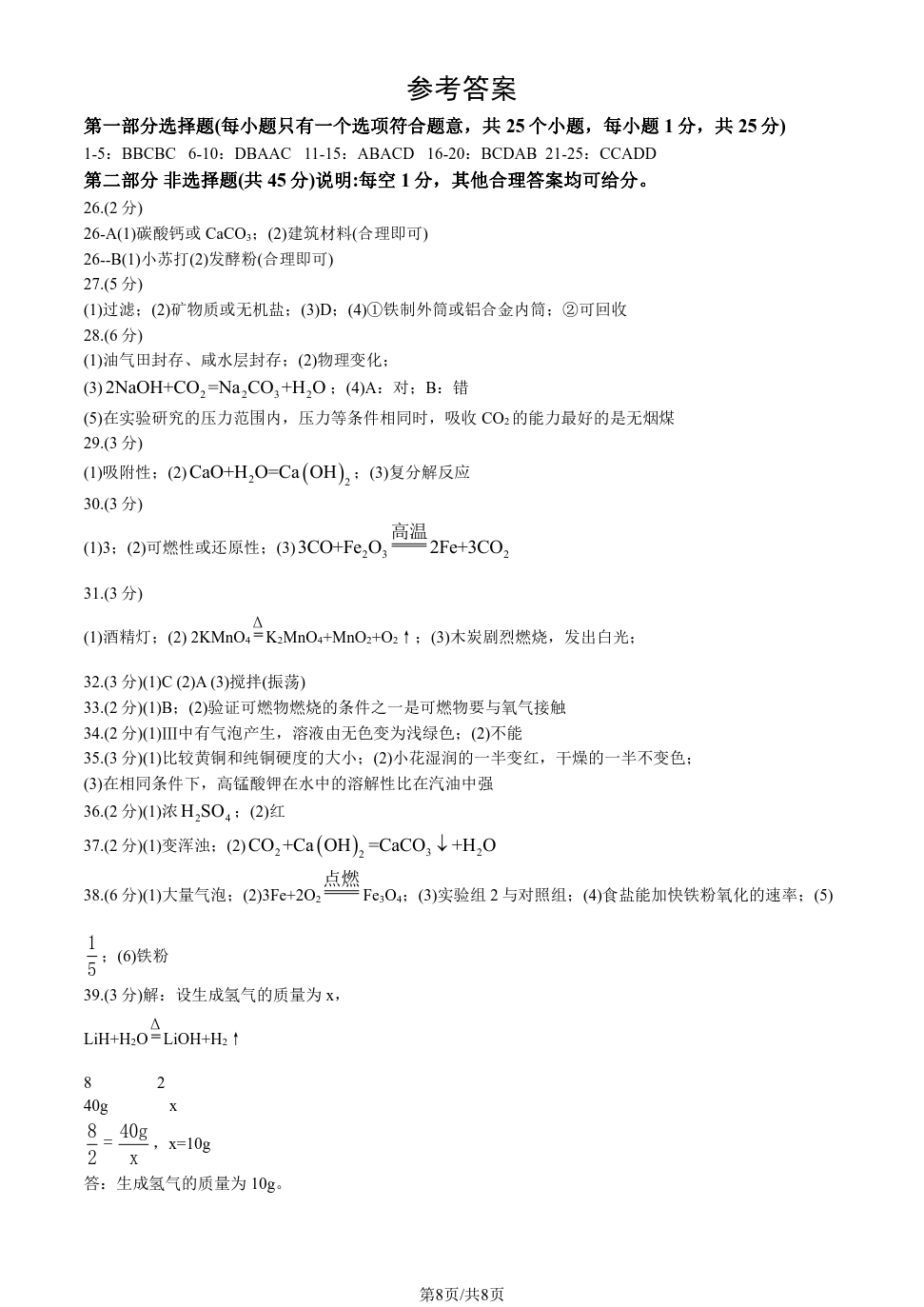2021全国各地中考化学试卷及解析100套汇总(学生版+教师版)
