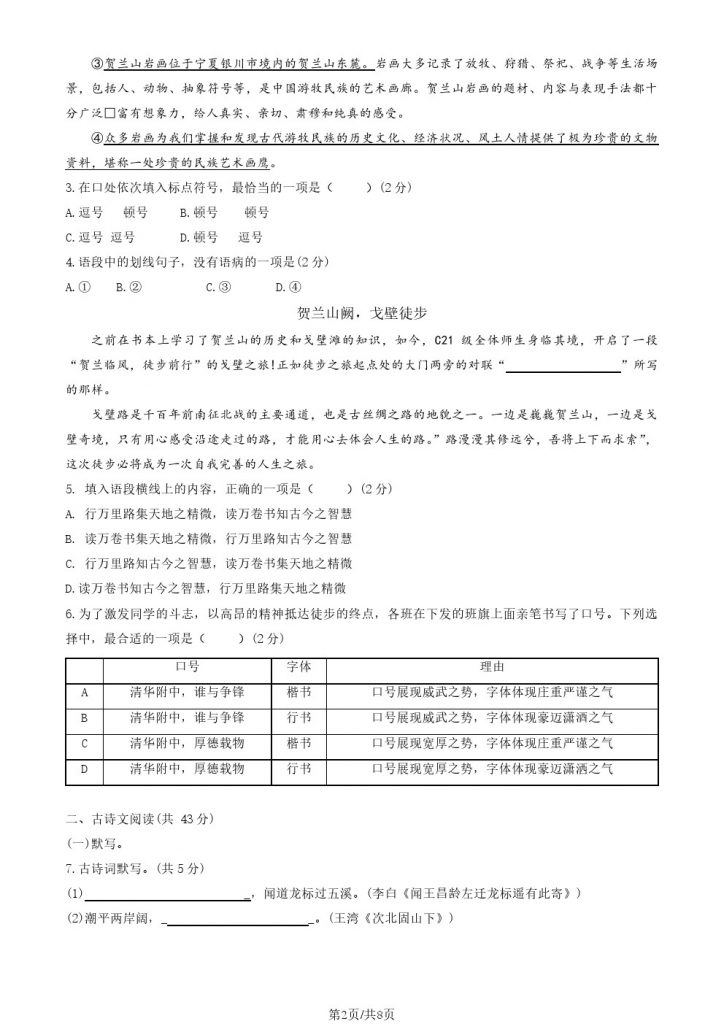 2024年北京初三即将开学,小编收集到了2023北京清华附中初三上语文开学考试题,现与大家分享。需要的自信下载练习吧。
