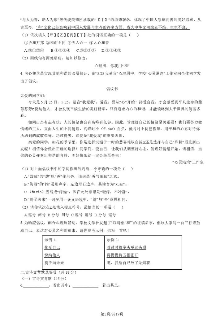 2024年北京初三即将开学,小编收集到了2023北京陈经纶中学初三上语文开学考试题完整版,现与大家分享。需要的自信下载练习吧。