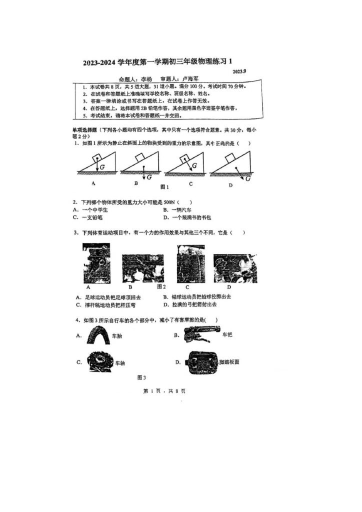 2024年北京初三即将开学,小编收集到了2023北京人大附中初三上物理开学考试题,现与大家分享。需要的自信下载练习吧。