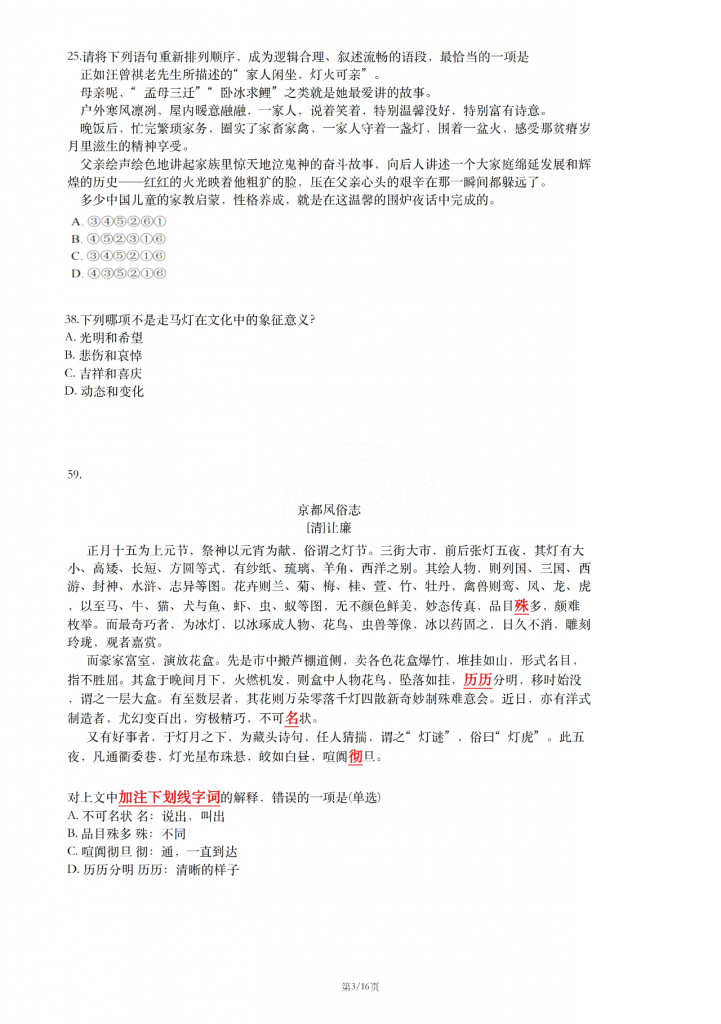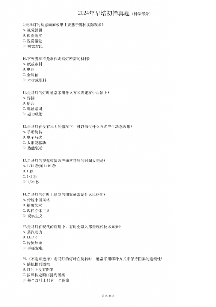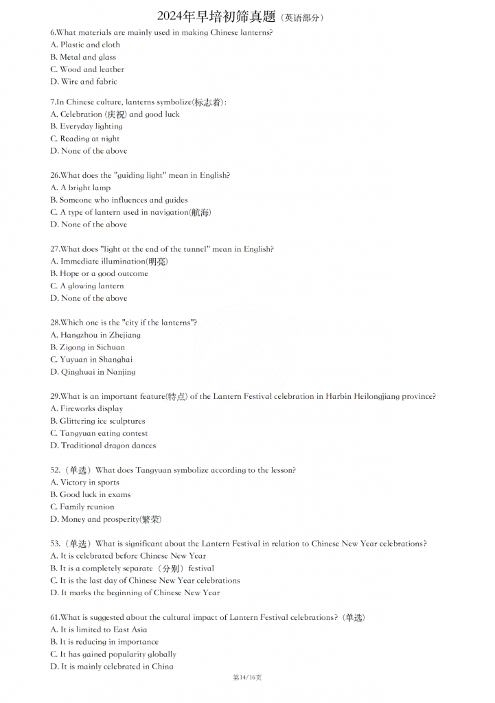人大附中早培项目的初筛活动于7月24日(周三)上午举行,整个活动分为两部分:教学视频观看和远程考试。教学视频内容丰富,既涵盖了考古、文化等人文知识,也涉及了与灯相关的物理、化学原理。而远程考试则涵盖了数学、语文及英语三大学科,总计63道题,考试时间为9:40至11点。