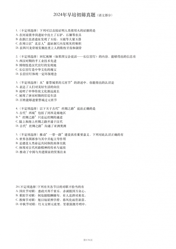 相关阅读:已发布!2024年人大附早培初筛数学真题