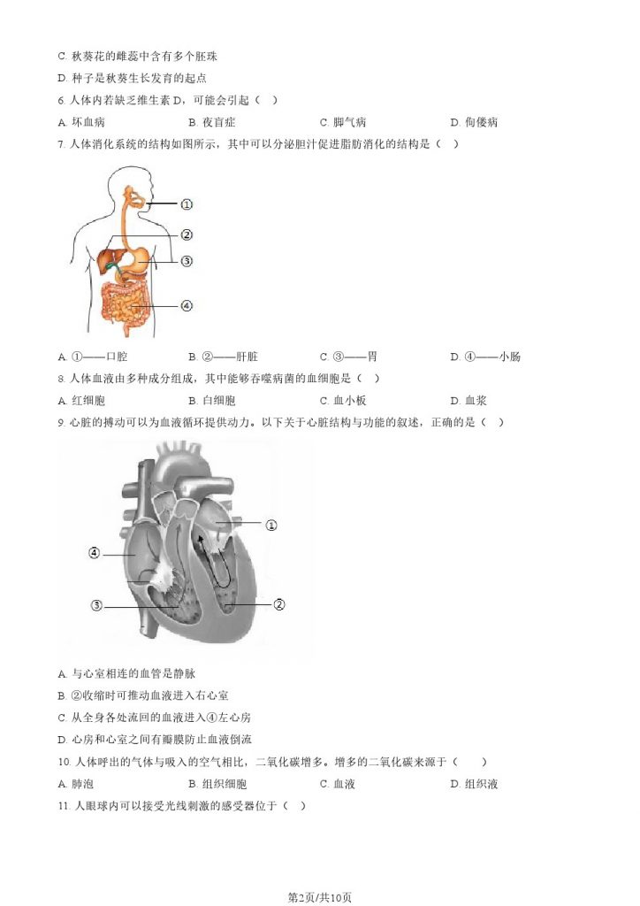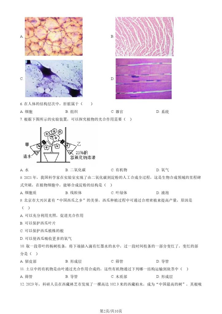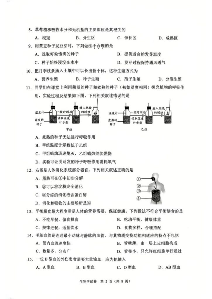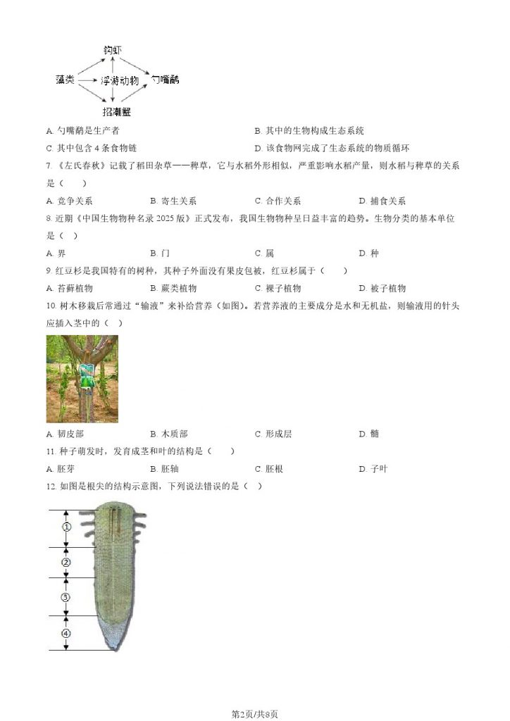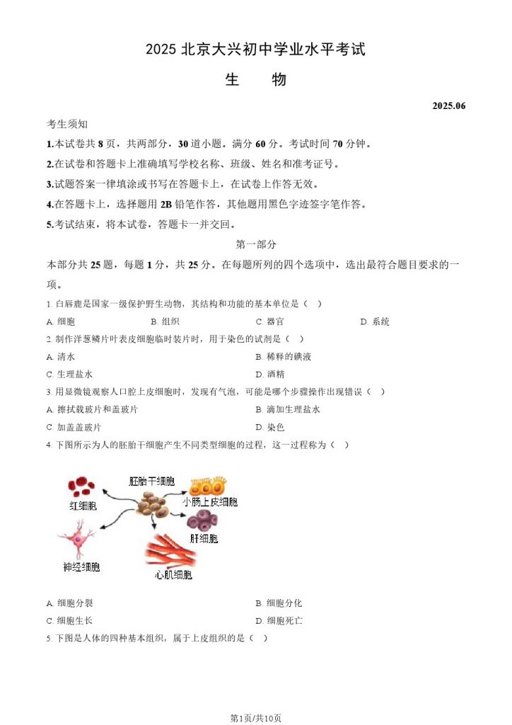 2025北京朝阳区初中学业水平考试生物试题及答案