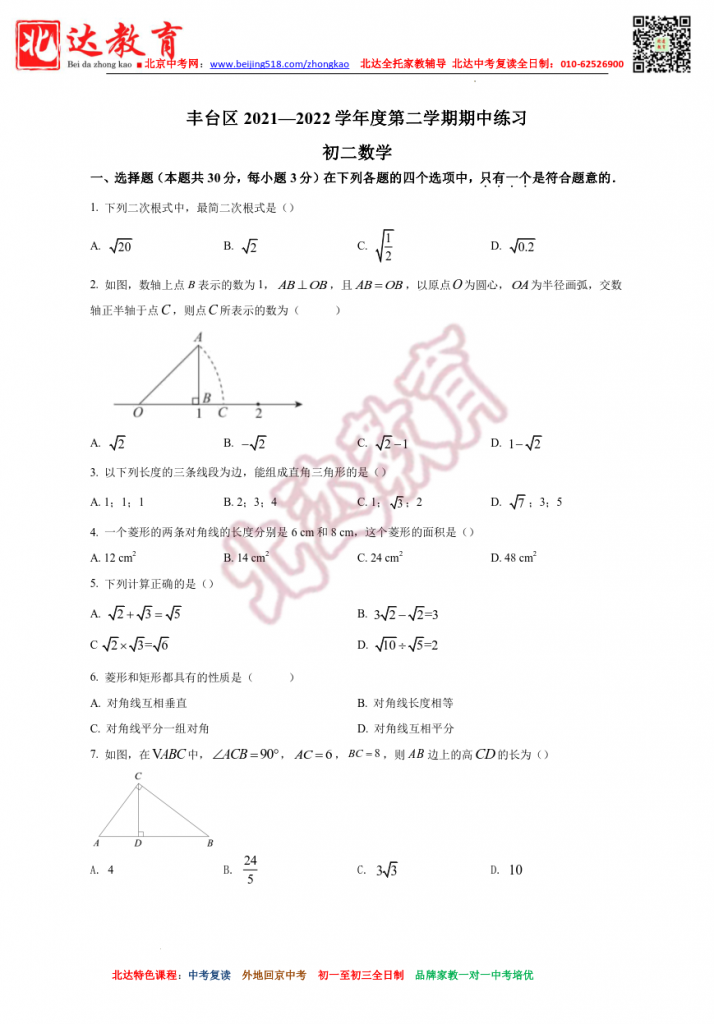 2021-2022学年北京二中教育集团八年级(上)期中数学试卷.doc